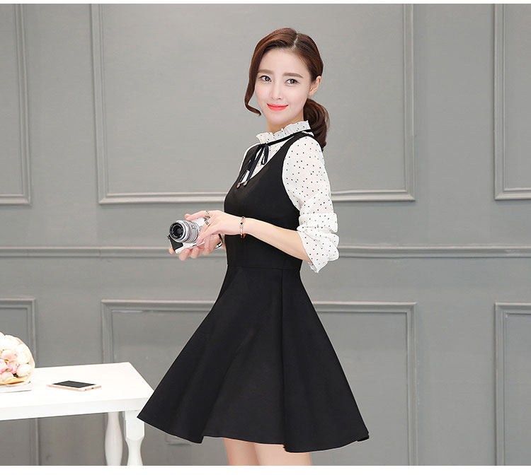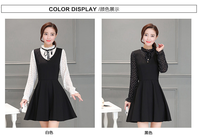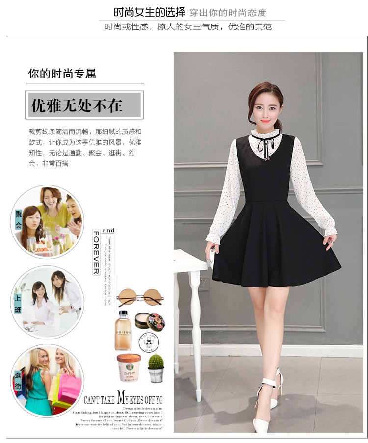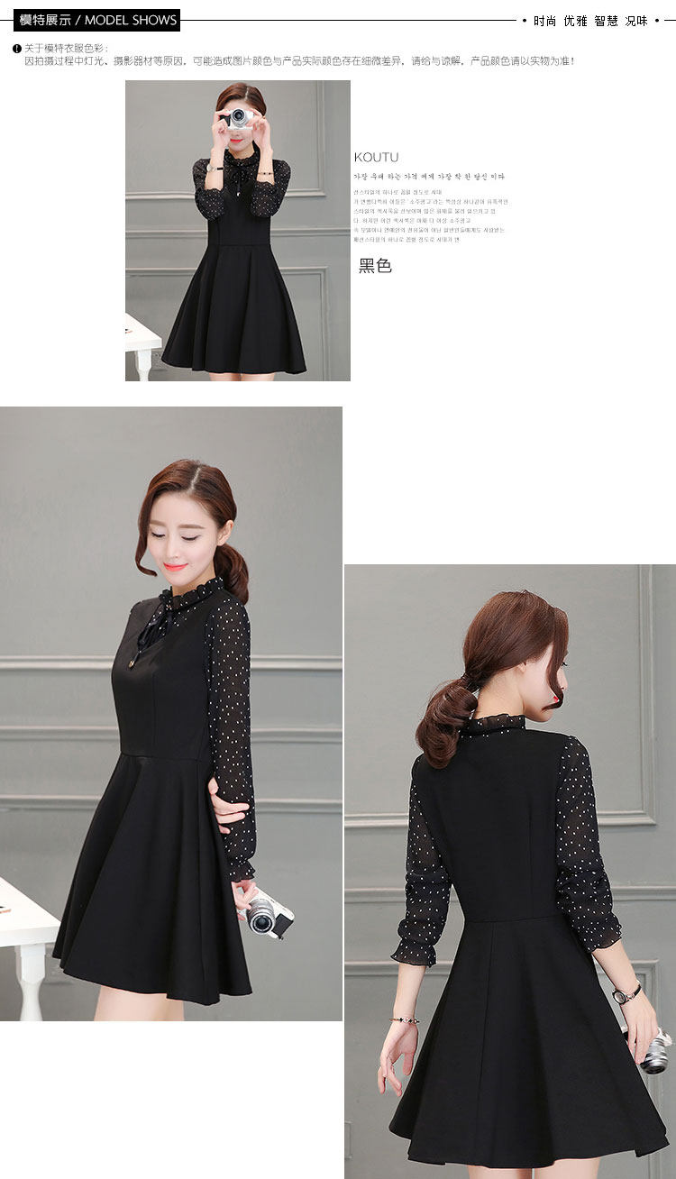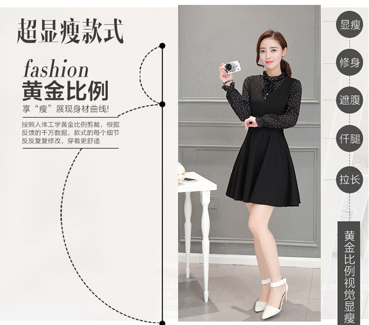 新款韩版气质连衣裙2016秋装长袖大码女装裙子拼接显瘦印花a字裙