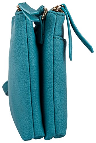 - STAY ORGANIZED - This bag is made of a soft faux nubuck leather with a snake textured embossing. Rich saturated colors of Burgundy, Stone white, and Turquoise. The double top zip means you can separate and organize all your small pieces of makeup, pens, papers, keys, glasses, band aids, lip gloss, and the hundreds of other things that are absolutely necessary.