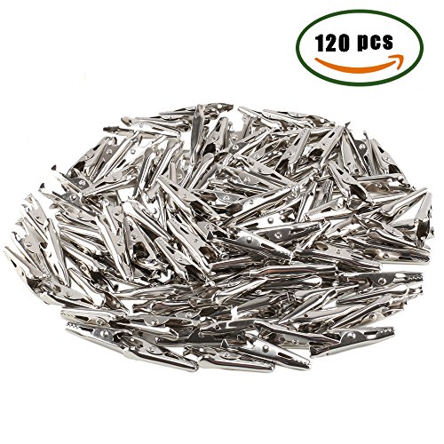 ManYee 120pcs 35 mm Silver Tone Alligator Clips Crocodile Clamps for Battery Test Clip Cable Lead Place Card Holder