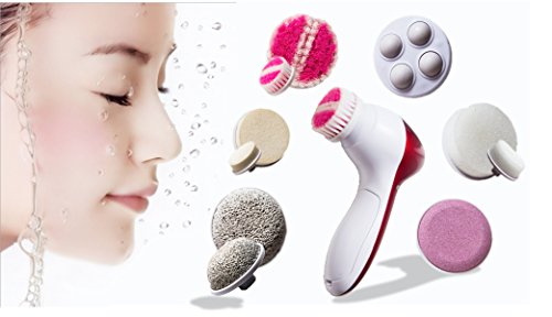 -. Feature : Exfoliate dead skin cells to renew your facial skin to be refreshed, radiant, smooth feeling and youthful looking. / Advanced Cleansing System is as effective as a system sold by skin professionals / Multi-functional 5-in-1 Facial Brush Kit with Sponge Head, Cleaning Brush, Skin Relief Massage Head, Hard Skin Polisher Head,Pumice Stone... / Reduce and erase fine lines & blackheads / Get your 5pcs massaging brush heads for Deep Cleansing and Gentle Exfoliation with 2 extra free accessories