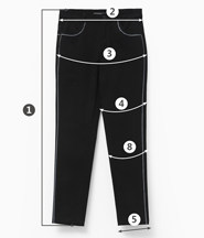 | 尺码 | ①裤长 | ②腰围 | ③臀围 | ④大腿围 | ⑤脚围 | ⑥前裆 | ⑦后裆 | ⑧膝围 | ||