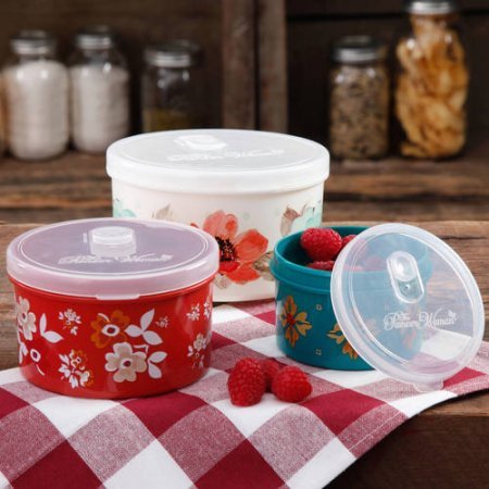 The Pioneer Woman Round Food Storage with Vent Container Set, Set of 3 in Bloom Dot