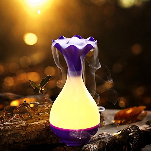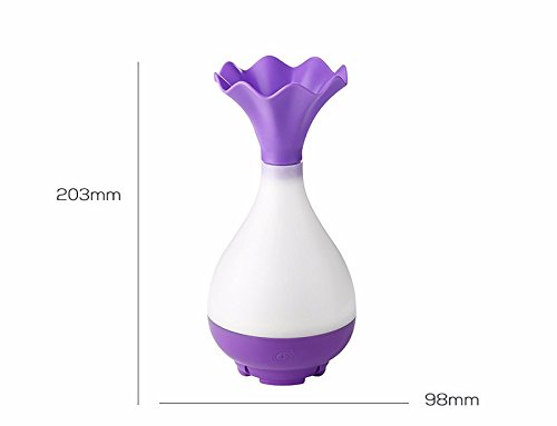 - ★PIUPIU Flower Vase Shaped Humidifier with LED nightlight:make your home keep the strong fragrance of the essential oil all day long at a reasonable expense; relaxing, energizing, purifying, helping focus, setting a right sleeping atmosphere. Also functions as an air purifier and mist humidifier. Shoots a strong, cool, continuous vapor straight into the air, cover the smell of pets or smoking, and protect you family from excessively dry air, microorganisms, allergens, dust, and more!