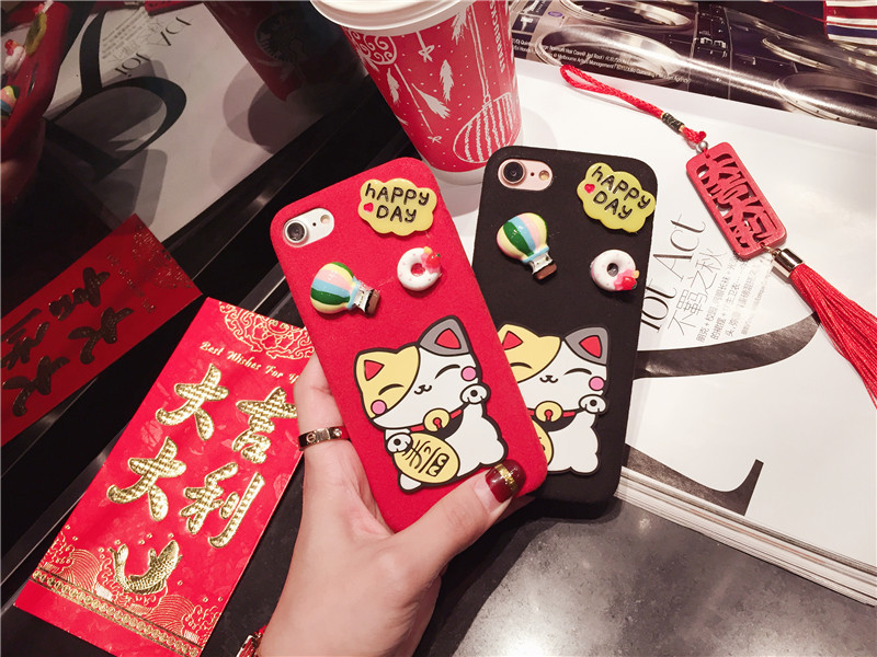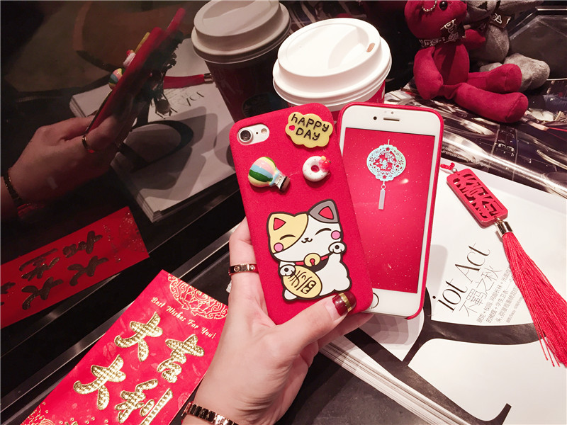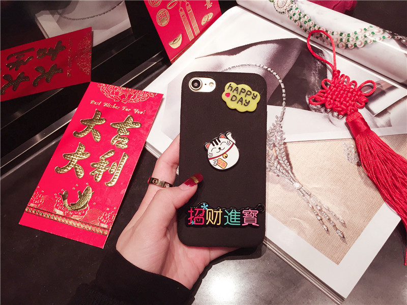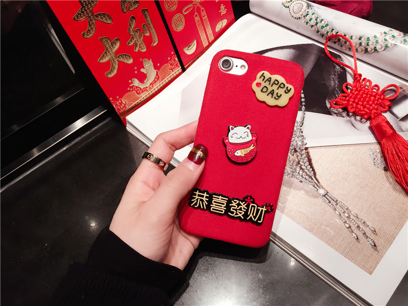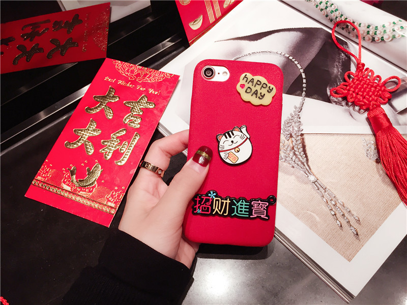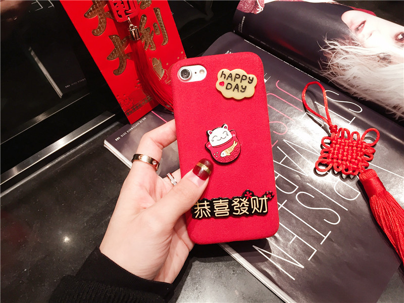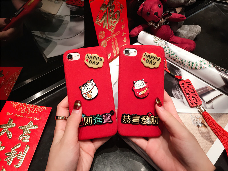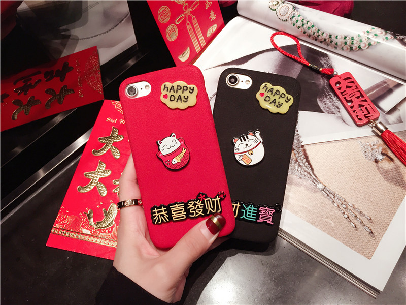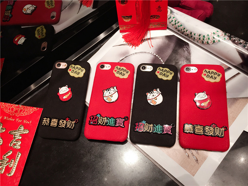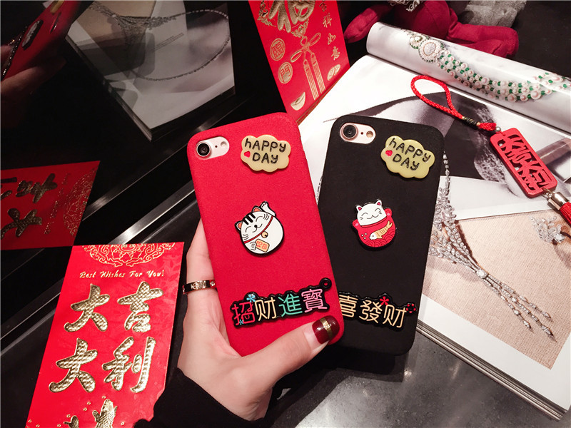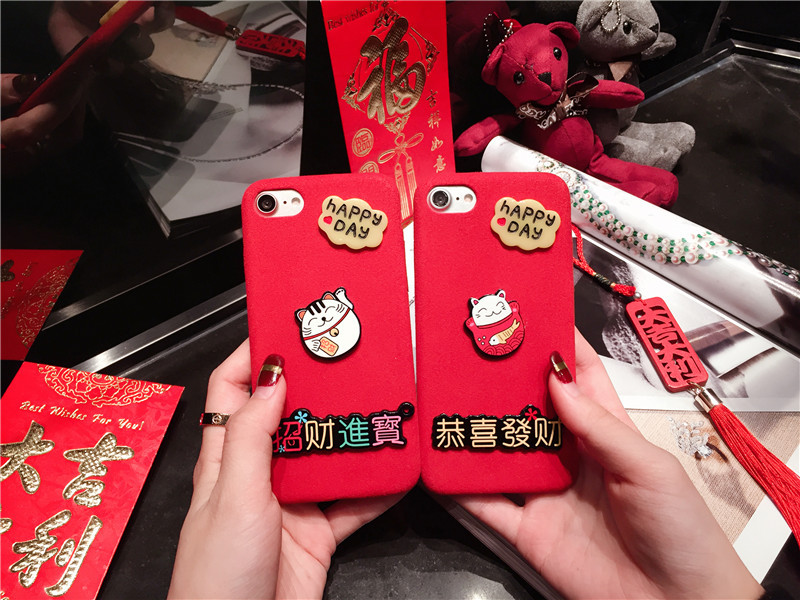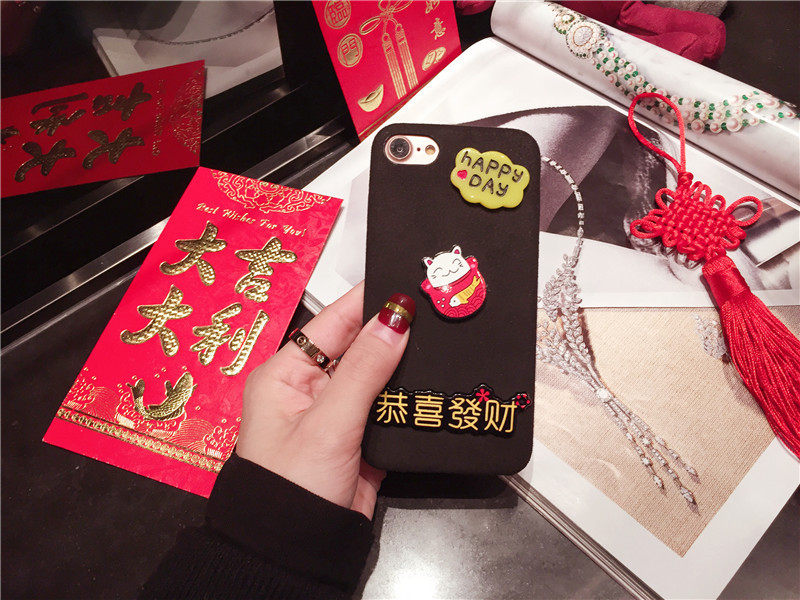 新しいiPhone Xの携帯電話のシェル新年の幸運な猫のドロップクリエイティブ保護スリーブiPhone8の携帯電話セット