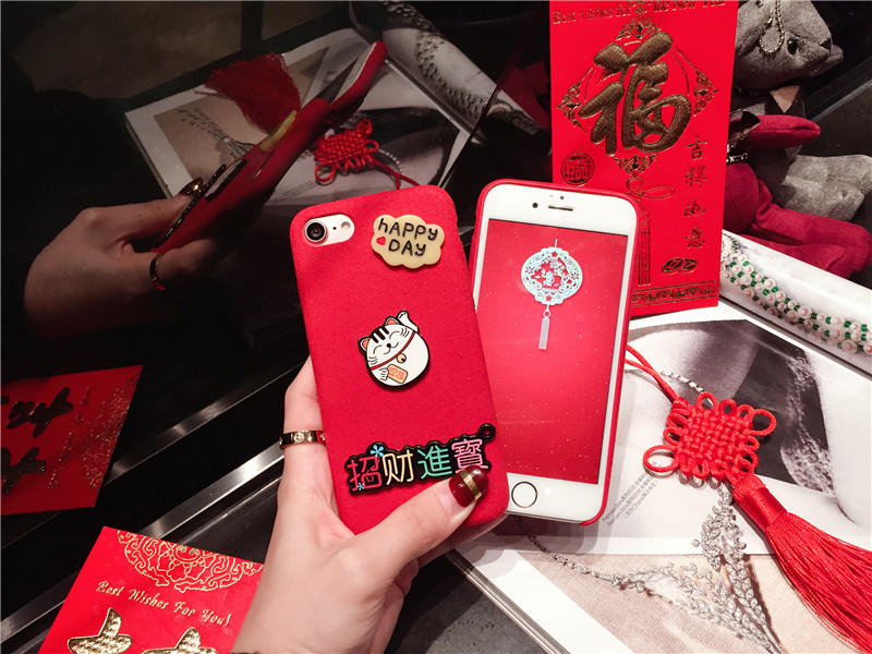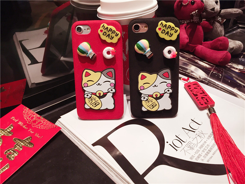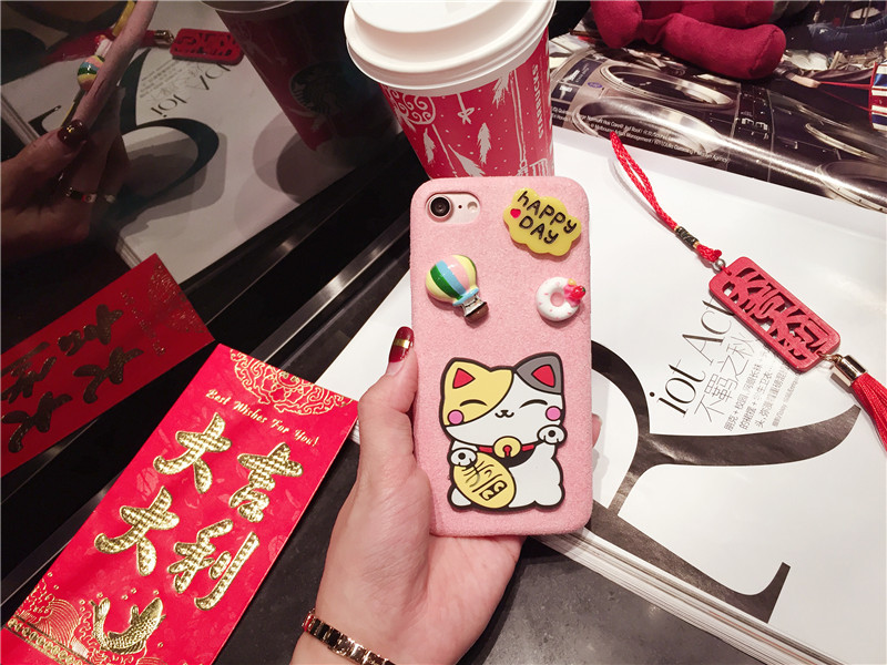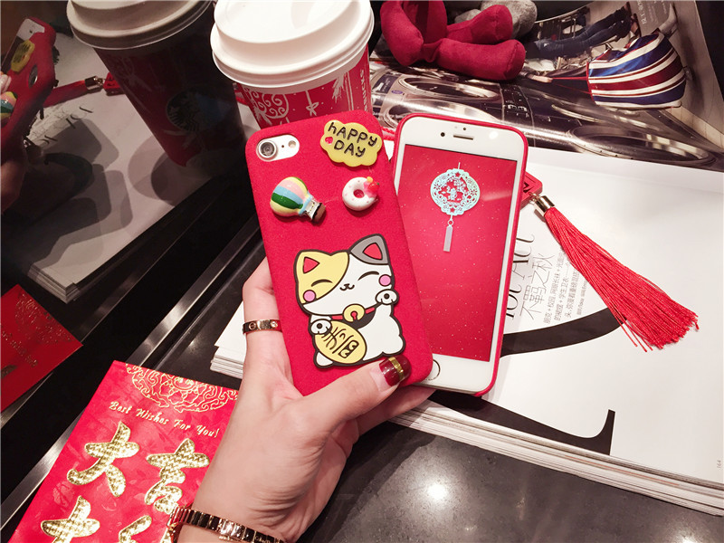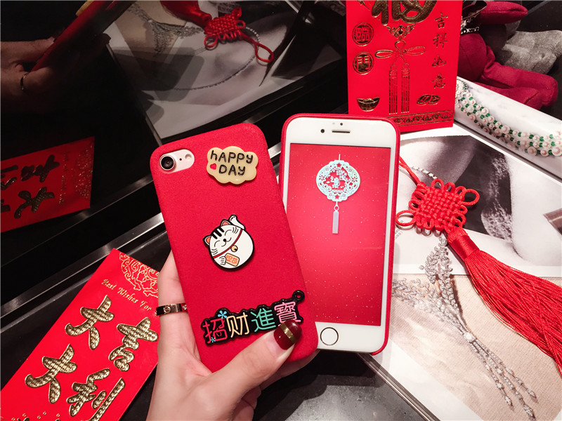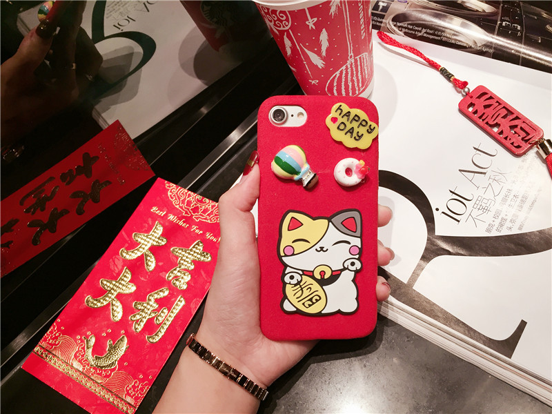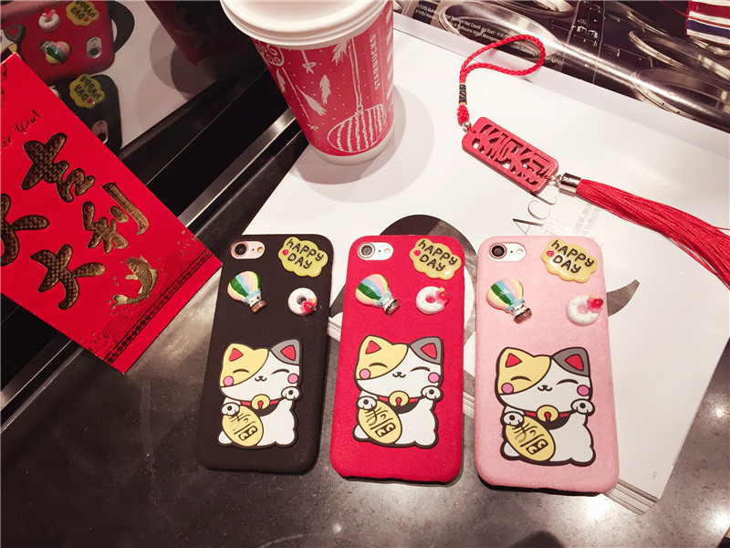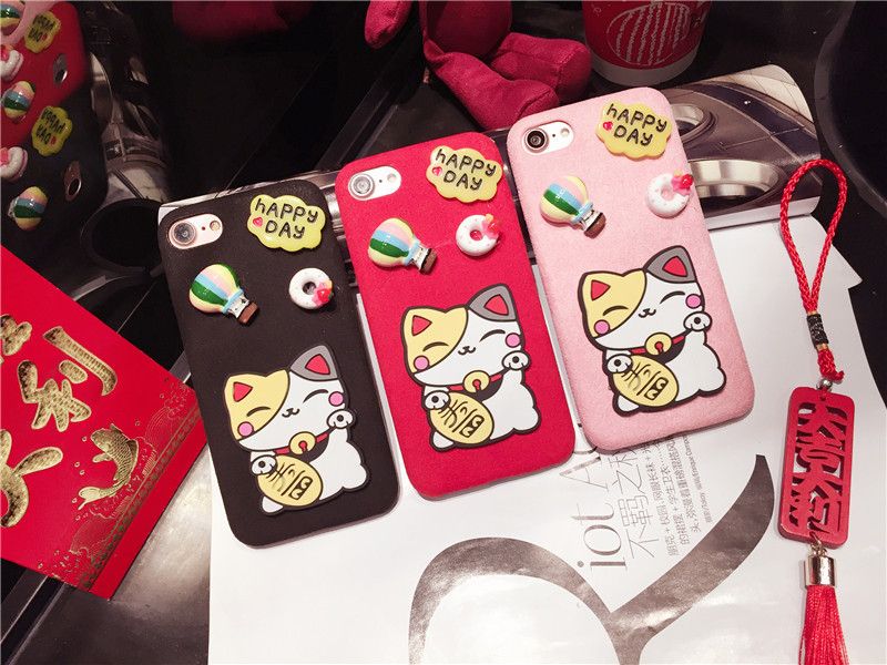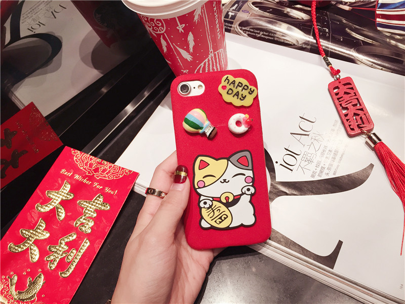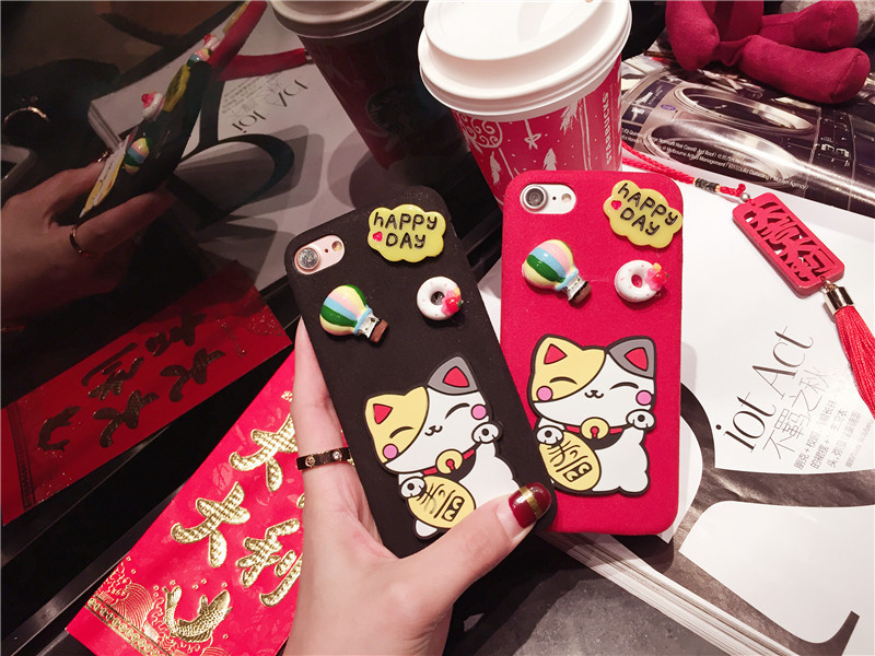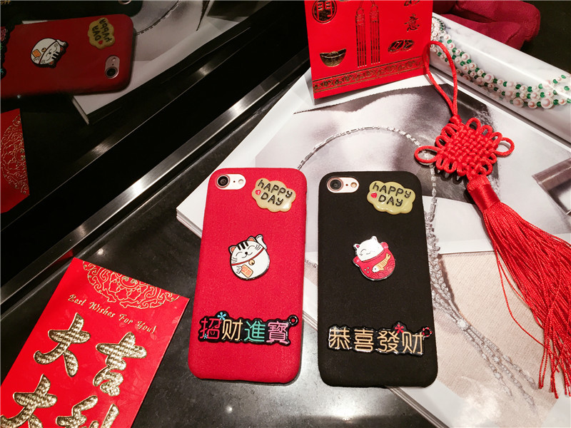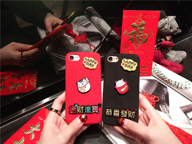新しいiPhone Xの携帯電話のシェル新年の幸運な猫のドロップクリエイティブ保護スリーブiPhone8の携帯電話セット