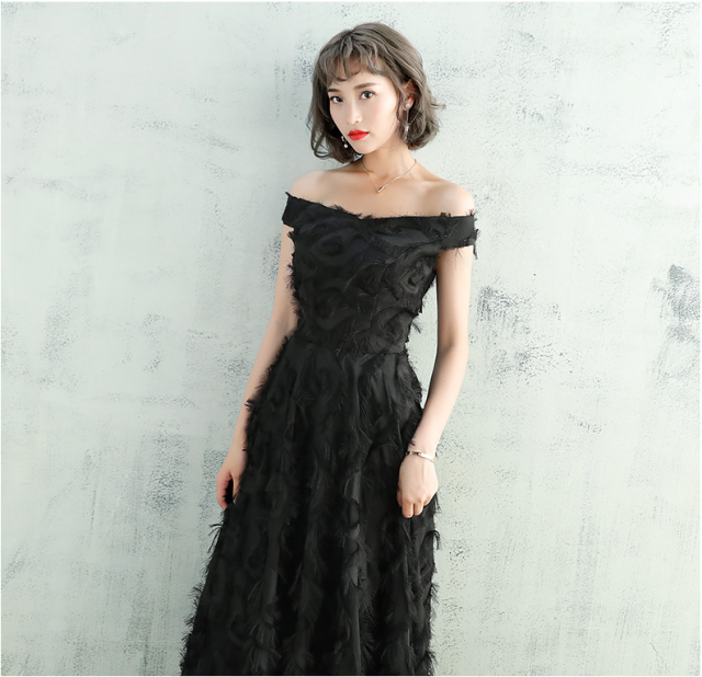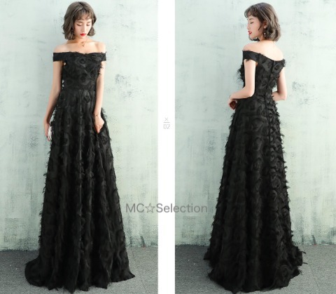散りばめられたフェザーモチーフが繊細な女性らしさを表現してくれるドレスです。