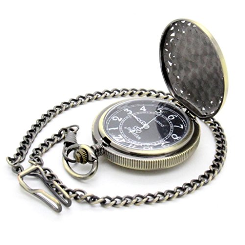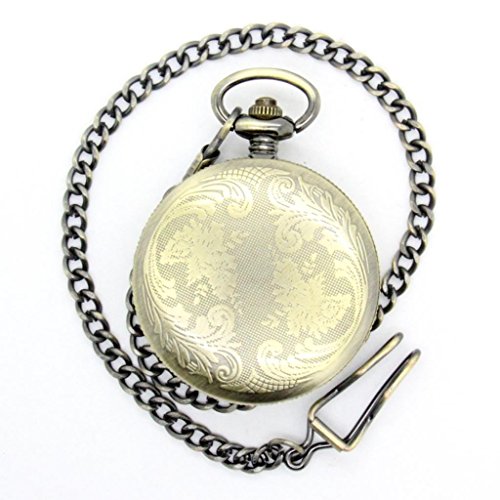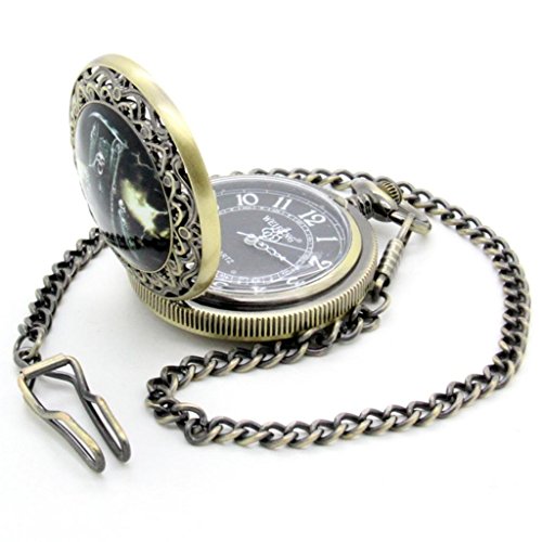 -. Feature : Quartz pocket watch / Bronze chain and case / Unique skull image cover / One side open pocket watch / Retro Style
