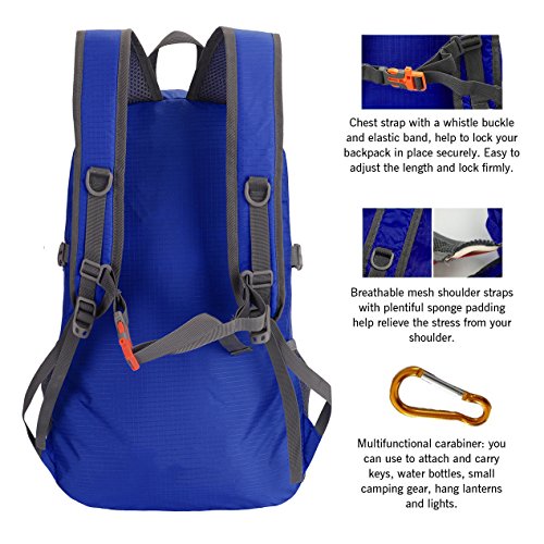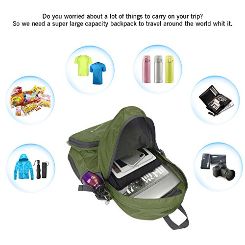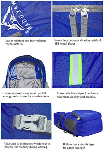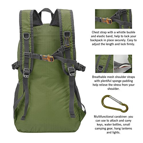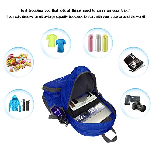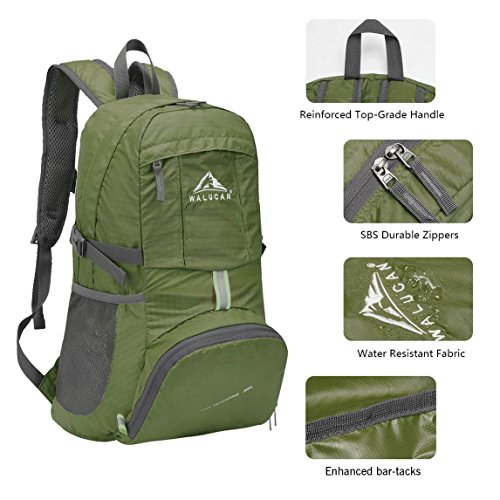 -. Brand : WALUCAN -. Color : Black -. Department : unisex-adult (lage only) -. Feature : DURABLE. This WALUCAN Backpack is made with high quality tear and water resistant material, provides extra strength and long-lasting performance with the lightest weight possible. The extra strength provided by the double-layer bottom piece makes it very convenient to carry more load on your journeys. Heavy duty two-way SBS metal zippers across the backpack are convenient to operation on whichever side you prefer. Longevity is further enhanced by bar-tacks at major stress points. / COMFORTABLE. Breathable mesh shoulder straps with plentiful sponge padding help relieve the stress from your shoulder. The length of the shoulder straps is adjustable. The chest strap with a whistle buckle help you lock your backpack in place securely. / MULTI COMPARTMENTS and KEEP THINGS ORGANIZED. This backpack features 1 main zipped compartment, 1 zippered inner pocket, 2 zipped front pockets,1 unique zippered and 2 side pockets. The 35L main compartment provide enough room for day trip or long journey. Two separators are convenient to help you further organize things. One unique zippered inner small pocket for valuable items. The Two side pockets can holding water bottles and umbrellas. / LIGHTWEIGHT(0.7LB) and ROOMY(35Liters).A true space saver. Fold the backpack into its own pocket for storage(no more excess baggage fees),and unfold it when you reach your destination. To avoid overweight charge, simply unfold from your checked bags and use it as a carry on for your excess baggage. / COMPACT. Folds into zipped inner pocket to fit anywhere, and unfolds from pocket to backpack in seconds. Free Multifunctional carabiner gift: you can use to attach and carry keys, water bottles, small camping gear, hang lanterns and lights. Very durable and great for hiking, camping and even kayaking.A must have for every trip.This is also a perfect gift for back to school,It is suitable for girls boys and students.Warranty: Our Promise-lifetime warranty-Exchange, return, whatever it takes. -. Label : WALUCAN -. Manufacturer : WALUCAN -. Model : WND022 -. MPN : WND022 -. PartNumber : WND022 -. ProductGroup : Sports -. ProductTypeName : OUTDOOR_RECREATION_PRODUCT -. Publisher : WALUCAN -. Studio : WALUCAN -. Title : WALUCAN Hiking Backpack Daypack Back Pack Lightweight Foldable Packable outdoor waterproof Travel