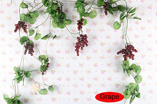 - Title : Colorfulife® 5pcs/lot Artificial Lifelike 95" Mini Fruit Vegetable Vines, Apple, Grape, Tangerine, Strawberry, Banana, Cherry, Pepper, Kumquat, Mango, Peach, Eggplant Ivy Hang Rattan Leaves Pipeline Cane Garland Wall Hanging Plant Wedding Party Home Garden Room Balcony Decoration (Grape)
