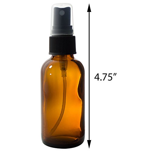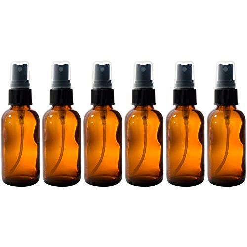 Amber Glass Boston Round Black Fine Mist Spray Bottle - 2 oz (6 Pack) + Travel Bag and Funnel for Aromatherapy, Perfume, Essential Oils, DIY, Home, Travel