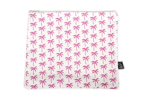 Palm Trees Set of 3 Pink Green 12 x 5 Inch Cotton Patterned Zippered Pouches Set