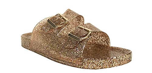 Product DescriptionKIND-1! Qupid Women's Glitter Adjustable Dual Strap Jelly Slide Sandals0