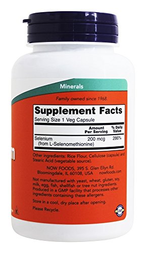NOW Foods Selenium 200 mcg - 180 Vegetarian Capsules Now Foods Selenium is an essential trace mineral and functions as part of the antioxidant enzyme glutathione perioxidase. Now Foods Selenium is bonded to the essential sulfur amino acid, methionine, in a naturally occuring form as found in the diet. Selenium in Now Foods Selenium is found most abundantly in Brazil Nuts, organ meats, seafood, and wheat germ.NOW's MissionThe NOW mission is - To provide value in products and services that empower people to lead healthier lives. NOW Foods is an award-winning and highly respected manufacturer of vitamins, minerals, dietary supplements and natural foods.In 1948, with the natural food and supplement industry in its infancy, entrepreneur Paul Richard paid $900 for the purchase of Fearn Soya Foods-a Chicago based manufacturer of grain and legume-based products. This began a six-decade legacy of providing health-seeking consumers with high-quality, affordable nutrition products. History of NOWIn 1968, NOW Foods was founded under the belief that good health was not a luxury available only to the wealthy. For the past forty years, NOW has made it their life's work to offer health food and nutritional supplements of the highest quality, at prices that are fair and affordable to all those who seek them. Today, NOW Foods is one of the top-selling brands in health foods stores, an award-winning manufacturer, a respected advocate of the natural product industry, and a leader in the fields of nutritional science and methods development. And while NOW has grown considerably over the past four decades, one thing has never changed - NOW's commitment to providing products and services that empower people to lead healthier lives.NOW Commitments Customer Focused and Information Driven - NOW believes that their products, services, and the decisions they make should be primarily influenced by the desires and needs of NOW customers. The decisions that NOW makes should be based on accFeature