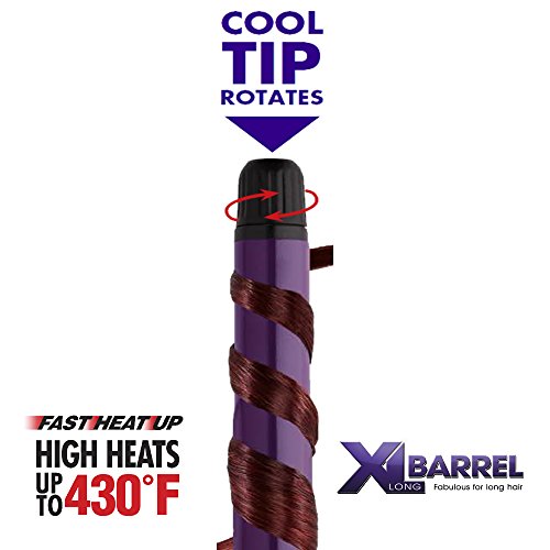 EXTRA-LONG styling surface allows more hair to come into contact with the longer barrel for quicker styling results and maximum curl retention. Patent Pending ROTATING Cool Tip for faster curl wrapping. For WAND use, simply wrap hair around the outside of the barrel and flipper to create beachy, wavy curls. Fast heat-up and instant heat recovery. Maintains constant, even heat while you style. CERAMIC AND TOURMALINE emits far-infrared heat and negative ions to seal the hair cuticle for soft, shiny, frizz-free styles. TITANIUM provides even heat distribution and durability under extreme temperatures and is corrosion-resistant to styling products.Feature