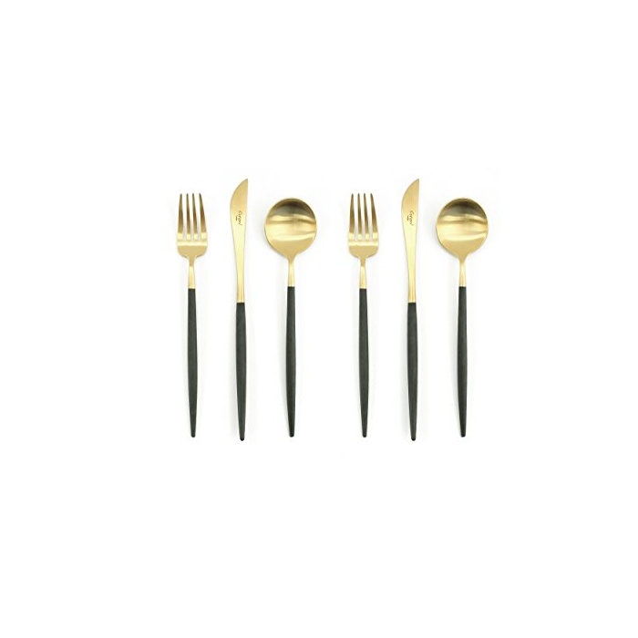 원본상품명: クチポル(Cutipol) GOA/ゴア ブラックマットゴルド デザト6点セット (ナイフフォクスプン) 化粧箱付