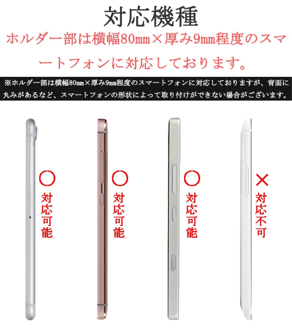 ※ The holder part corresponds to a smartphone of about 80 mm width × 9 mm thickness, but there are cases where it can not be installed depending on the shape of the smartphone, such as there is roundness on the back.