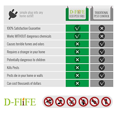 D-FLIFE Pest Repeller,Ultrasonic Pest Repellent Plug In with Night Light Eco-Friendly Electronic Pest Control for Insects, Mosquitoes, Cockroaches, Ants, Rodents, Flies, Bugs, Spiders, Mice [4-Pack]