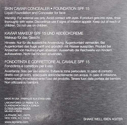 -. Binding : Health and Beauty -. Brand : La Prairie -. Color : Honey Beige -. Department : womens -. EAN : 6909110534389 -. Feature : Skin caviar concealer foundation SPF 15, honey beige was launched by the design house of la prairie / It is recommended for daily use; Please store in a cool dry place / Skin caviar concealer foundation SPF 15, honey beige by la prairie for unisex, 1 ounce foundation -. IsAdultProduct : 0 -. Label : La Prairie -. Manufacturer : La Prairie -. Model : LAPRAIRIE-26372 -. MPN : LAPRAIRIE-26372 -. NumberOfItems : 1 -. PackageQuantity : 1 -. PartNumber : LAPRAIRIE-26372 -. ProductGroup : Beauty -. ProductTypeName : BEAUTY -. PublicationDate : 2013-08-04 -. Publisher : La Prairie -. ReleaseDate : 2015-05-15 -. SKU : SB03141183302 -. Studio : La Prairie -. Title : La Prairie Skin Caviar Concealer Foundation SPF 15, Honey Beige, 1 Ounce -. UPC : 031411833024