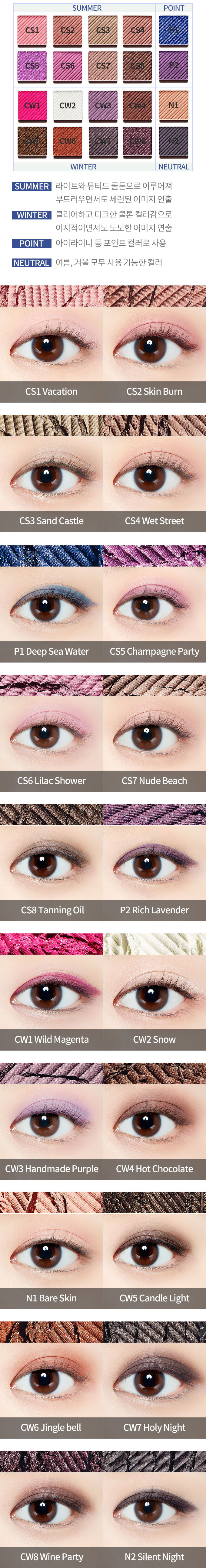 基本的なウォムトンとクルトンに続き、春、夏、秋、冬の4つの季節まで詳細に分けて、より洗練された専門的にパーソナルカラーメイクを 演出できます。