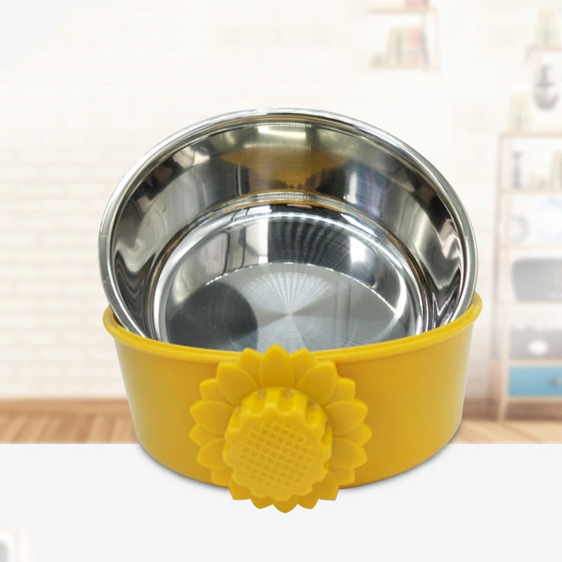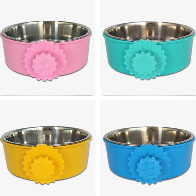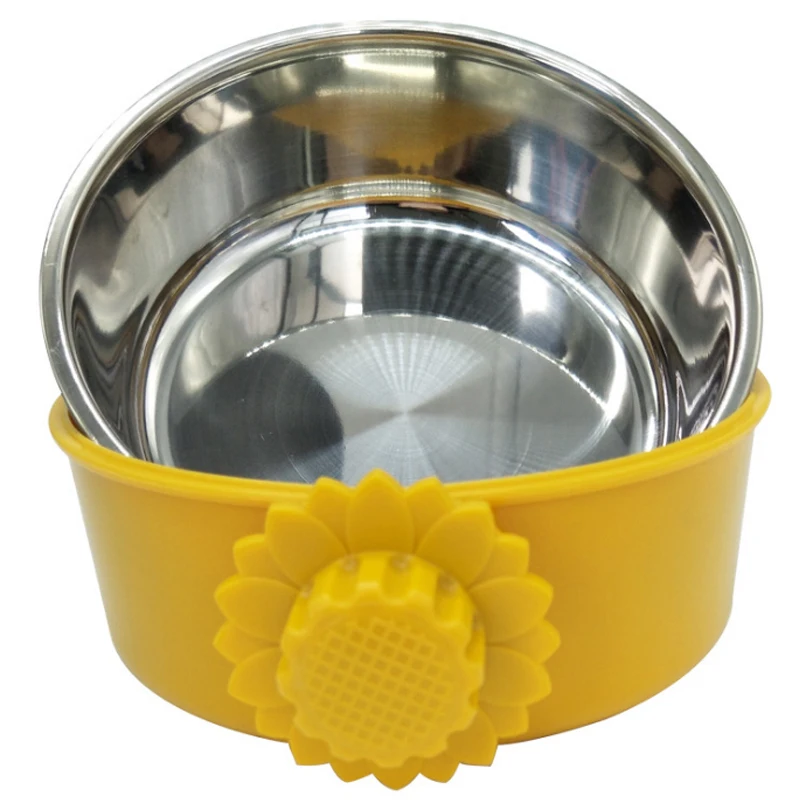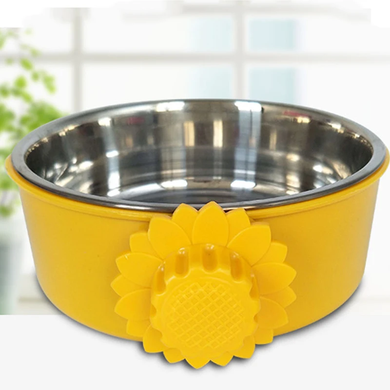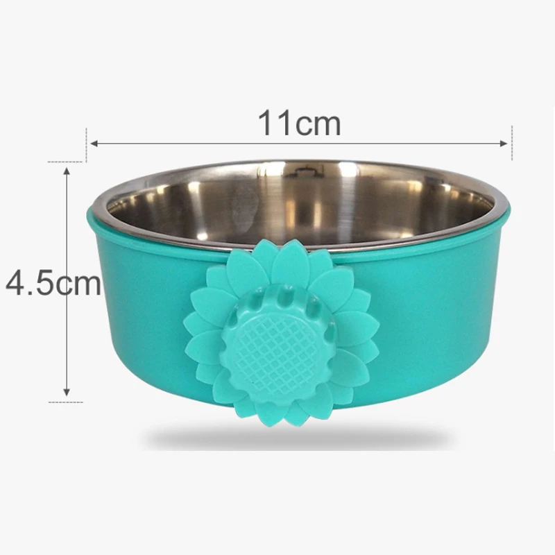 Pet feeding portable thickening and durable stainless steel 304 anti slip hanging sunflower pattern dog and cat feed tool