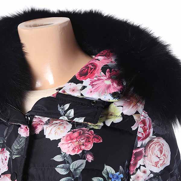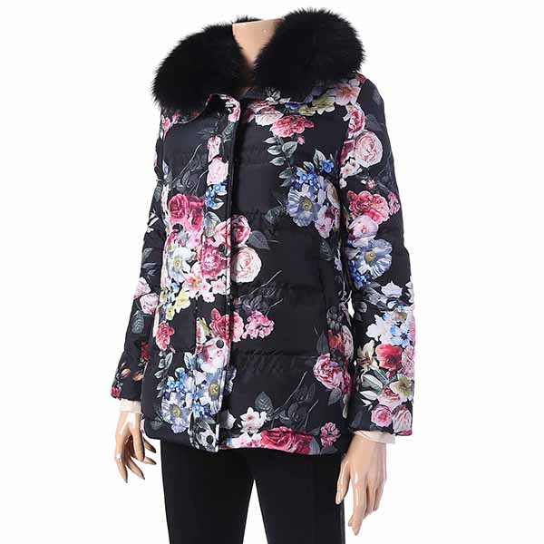 이국적이면서 오리엔탈 느낌이 나는 플라워 프린트의 덕다운 점퍼.