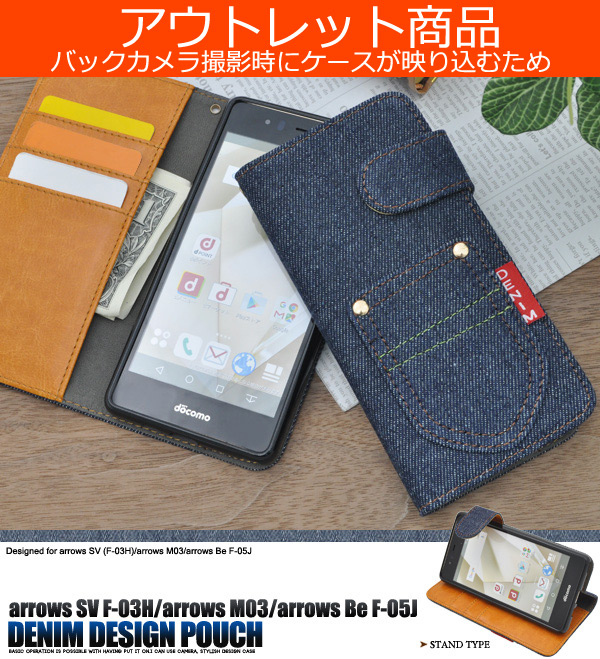 arrows SV (F-03H)/arrows M03/arrows Be?F-05J用デニムデザインスタンドケースポーチ