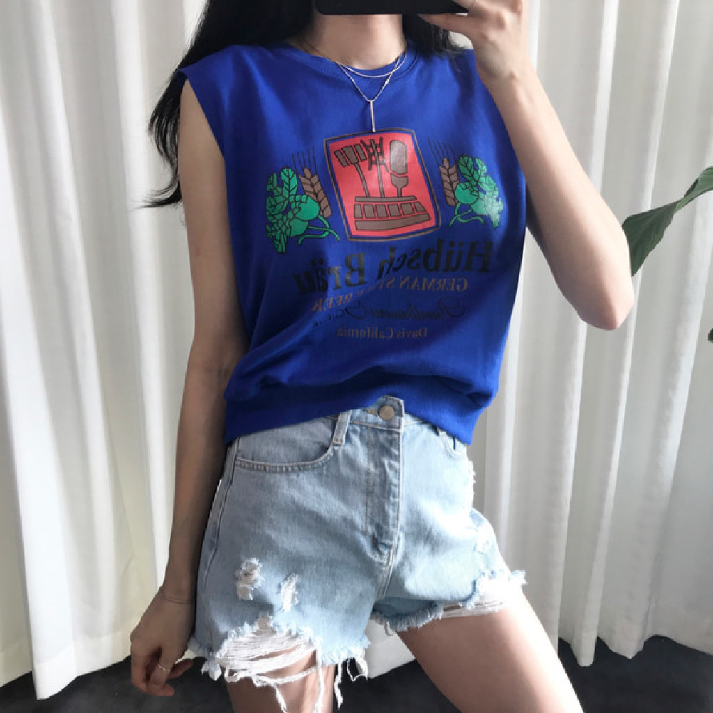 일러스트 프린팅이 포인트인 나시티셔츠입니다