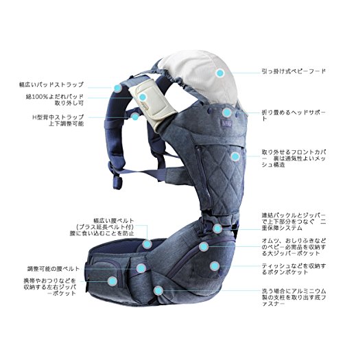 生地:ポリエステル 適合年齢:出生から36ヶ月頃まで 耐荷重:19.9KG 腰ベルトサイズ:12×186cm(元長さ157cm、プラス延長ベルト29cm)
