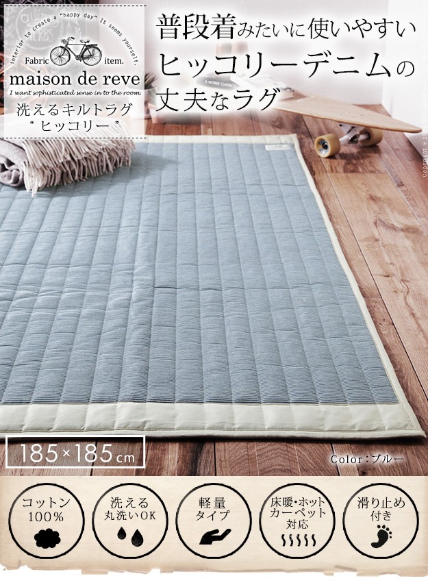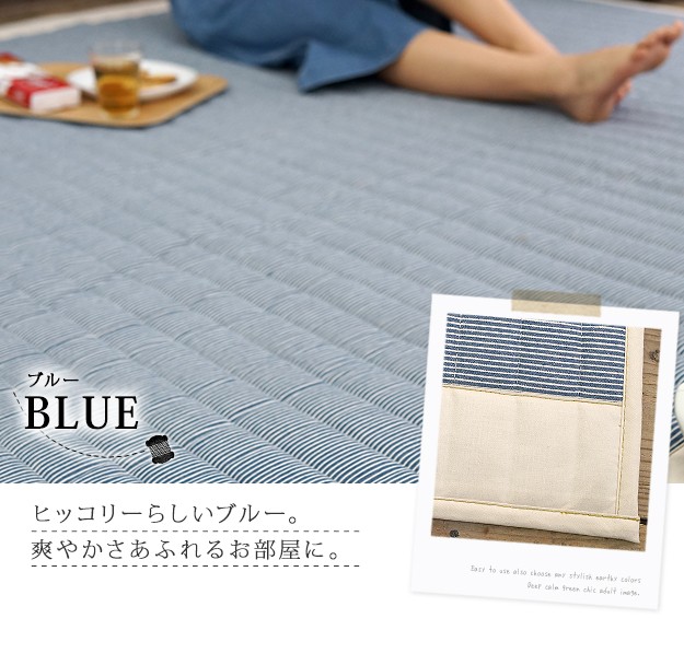 ※メーカー直送のため代金引換はお受けできません。※沖縄・一部離島は別途送料がかかります。お見積もりいたしますのでお問い合わせ下さい。【カラーバリエーション】ベージュ・グリーン・ブルー【仕様】本体:綿100%裏面:不織布(滑り止め加工)中綿:ポリエステル100%【サイズ】約185x185cm重量:約3kg株式会社ナカムラ(33100061)