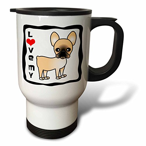 3dRose I Love My French Bulldog Black Masked Fawn Cream Travel Mug, 14 oz, Stainless Steel, White
