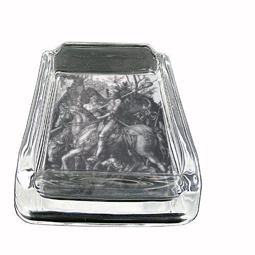 -. Title : Glass Square Ashtray Albrecht Durer Knight Death Devil Whiskey D-211