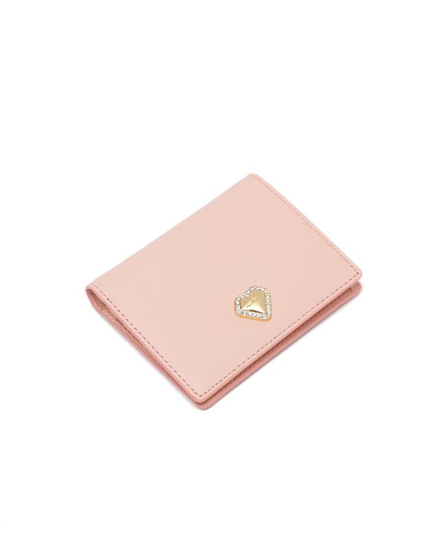 중앙의 하트 펜던트로 포인트를 주었고, 내부 핑크로 여성스러운 느낌을 살린 2단 카드지갑입니다