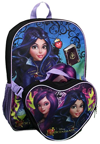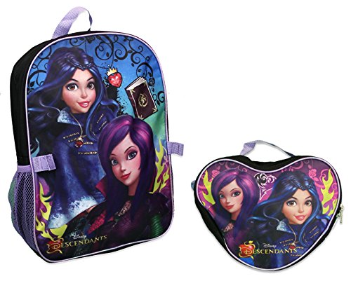 -. Brand : Descendants -. ClothingSize : One Size -. Color : Heart Shaped -. Department : girls -. Feature : Features mesh side pockets to carry water or other drinks and snacks. . / Padded curved shoulder strap for additional comfort / 16"H x 12" W x 5" Deep / Main compartment for organizing books, binders, folders and other supplies -. MPN : BP5640 -. NumberOfItems : 1 -. PartNumber : BP5640 -. ProductGroup : Apparel -. ProductTypeName : LAGE -. Size : One Size -. Title : Disney Descendants 16" Backpack with Lunch Bag Combo