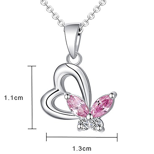 .925 sterling silver rhodium plated heart necklace inset with pink and diamond-like cubic zirconia gemstones, 16" sterling silver chain with spring ring clasp