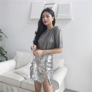 スパンコール ミニ丈スカート タイトミニスカート サイドスリット ハイウエスト キラキラ トレンド プチプラ 大人可愛い