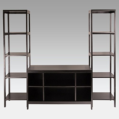 -. Feature : Dimensions: 70W x 19D x 60.4H inches / Simple yet elegant entertainment set / Made of laminated wood solids and composites / Dark espresso finish / Fits flat panel TVs up to 44W inches