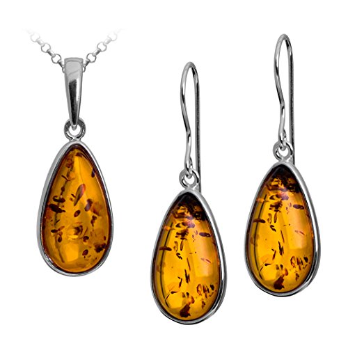 Noda Bernstein Sterling Silber Schmuck-Set Klassisch Ohrringe Anhanger Kette 46 cm