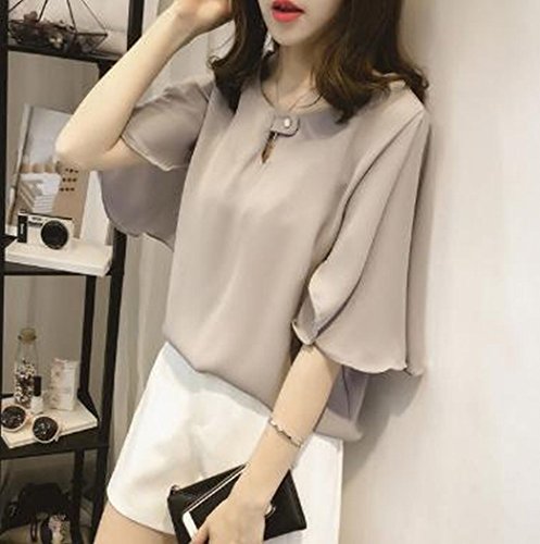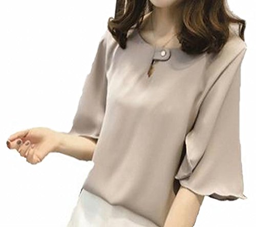 -. Title : (TERA Dream) ブラウス フレア袖 サラサラ生地 襟元 ボタン留め レディース グレー M