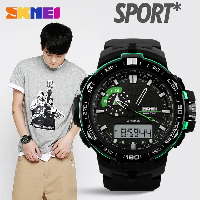 2017 최고 럭셔리 브랜드 남성 스포츠 듀얼 LED 디지털 석영 아날로그 손목 시계 군사 야외 방수 Relogio Masculino