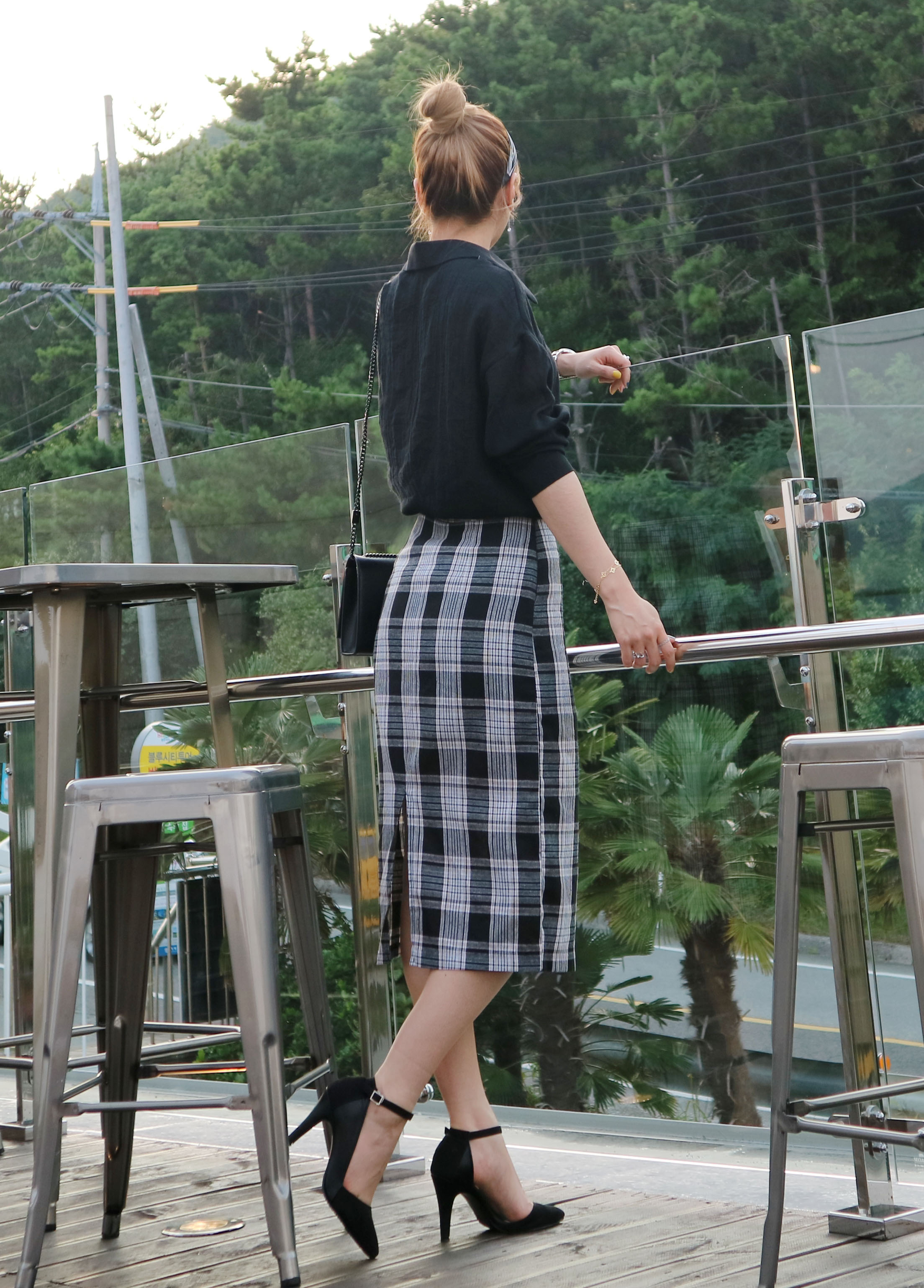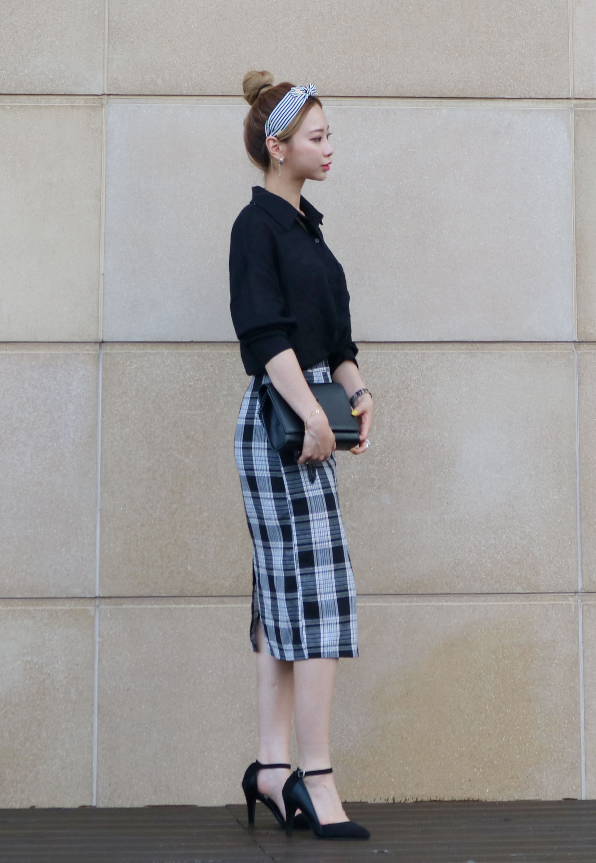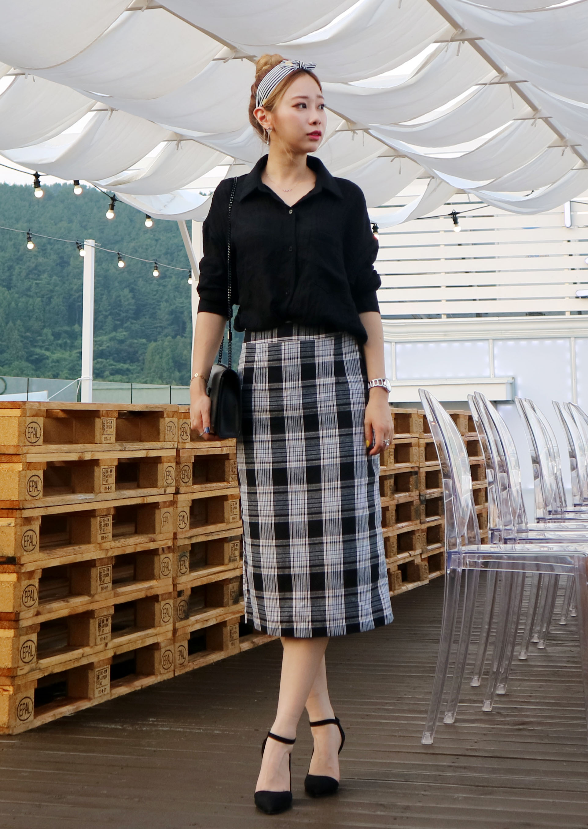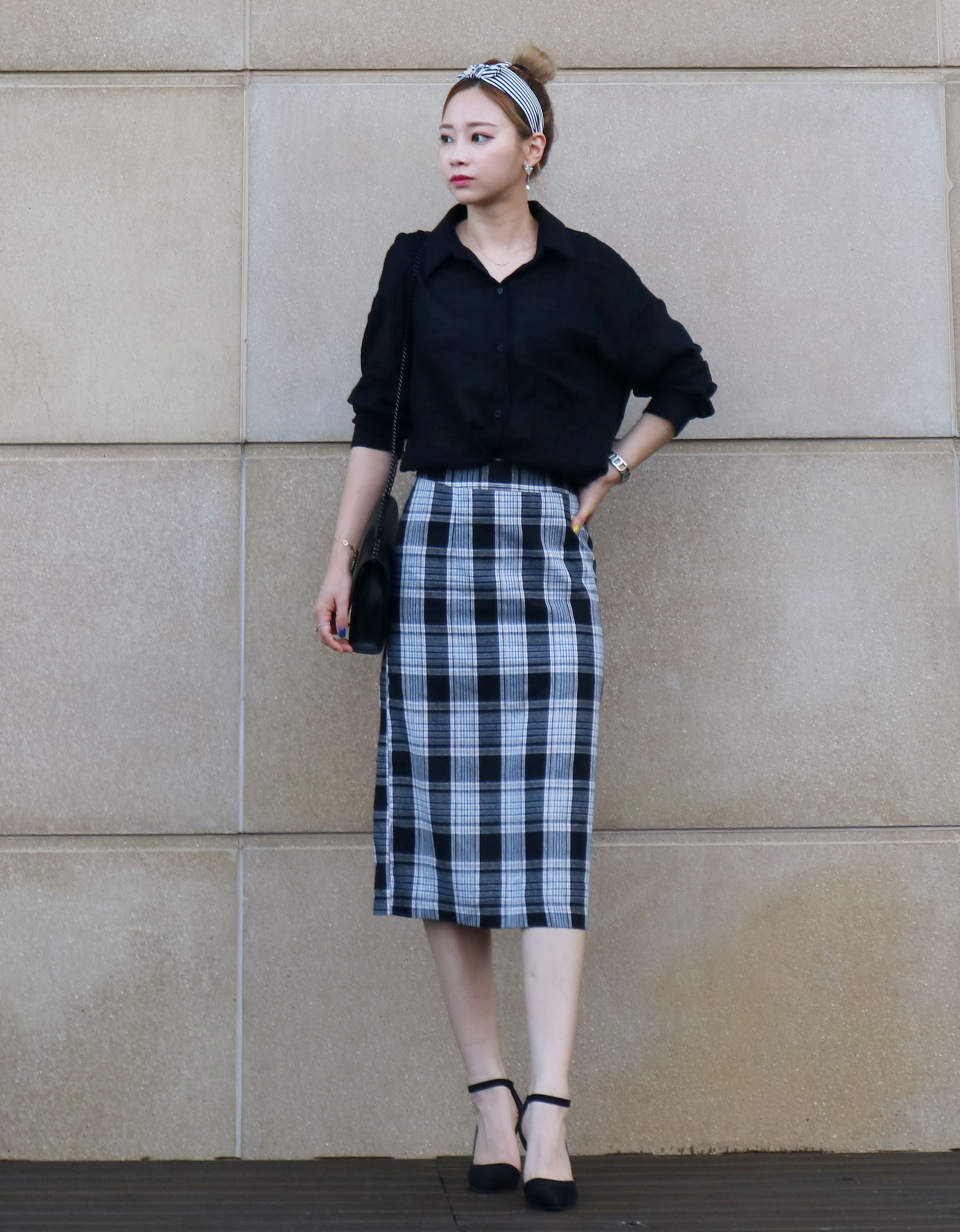H line check Midi skirt Office look Thirties woman in autumn 30
