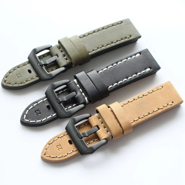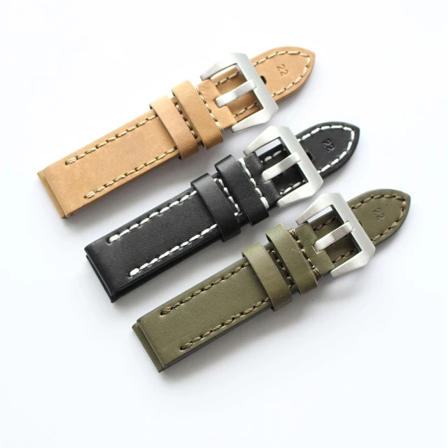 | [해외]TJP 20 미리메터 22 미리메터 24 미리메터 26 미리메터 카키 Blakc 녹색 빈티지 두꺼운 정품 가죽 스트랩 손목 교체 PAM 파일럿 시계 팔찌 |