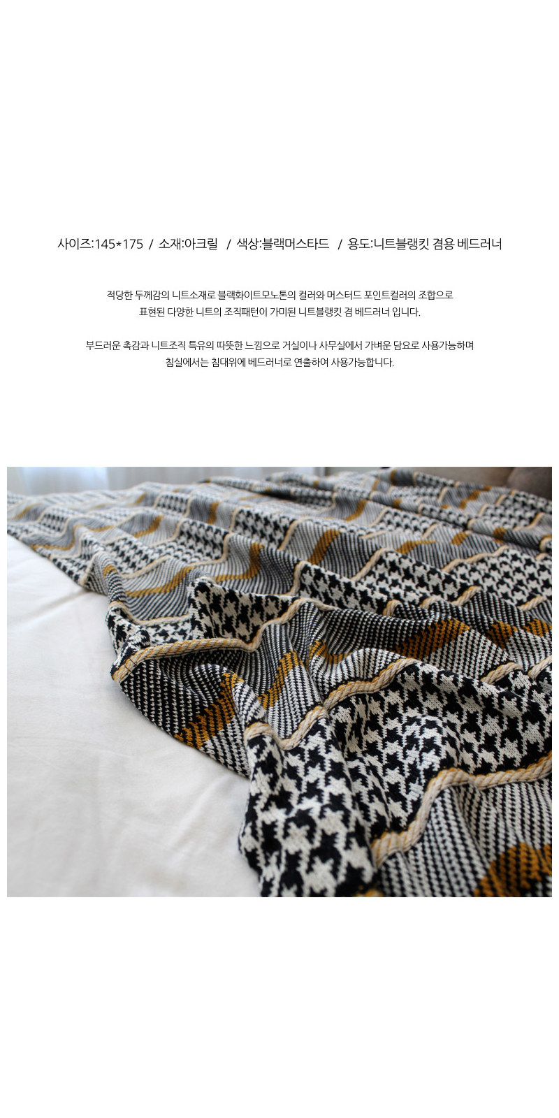 쇼파위에서 가벼운 담요로 사용가능하며 또는 침대 위 베드러너로 연출하여 사용가능합니다.