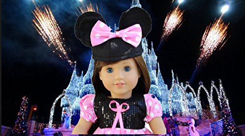 American Girl doll minnie mouse dress pink with white dots and black sequin top minnie mouse ears hat with bow velcro closure easy to put on and take off. Fits all 18" dolls like American Girl, Our generation Doll, Emily Rose doll, Madame Alexander dolls. We have several sets of doll outfits for sale on Amazon! In-Style doll clothes delivers 18 inch doll clothes for all 18 doll fans.Feature