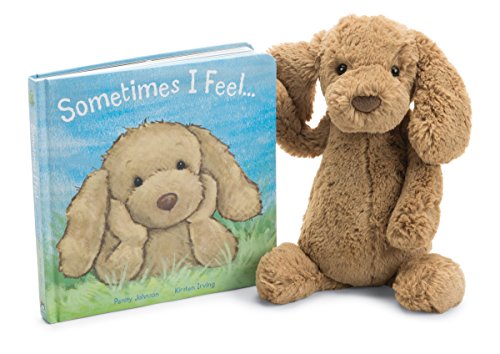Jellycat Sometimes I Feel Board Book and Bashful Toffee Puppy, Medium - 12 inches