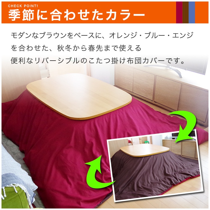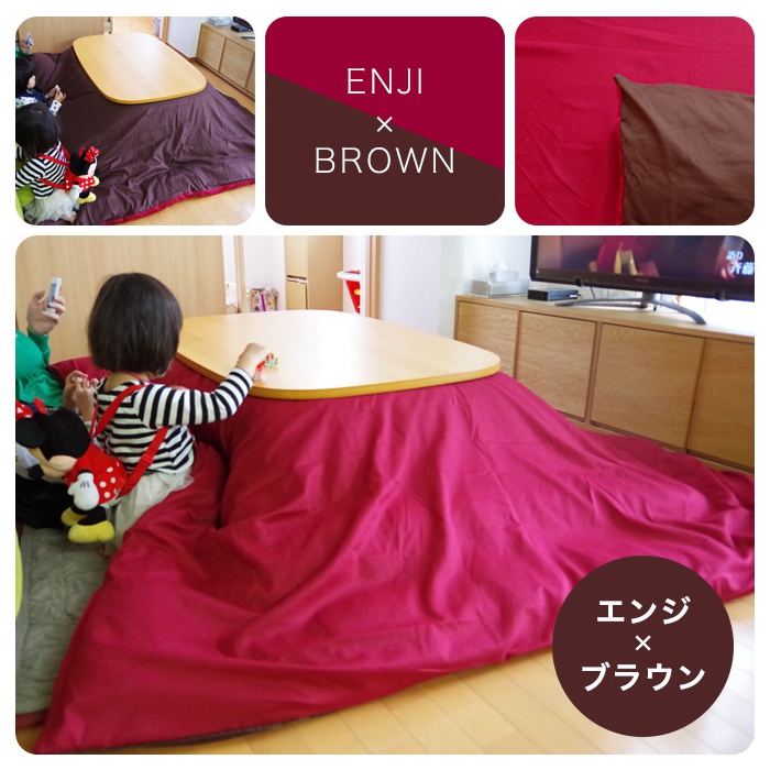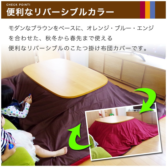 Rakuten 난로 이불 커버 정방형 리버시블 컬러 난로 커버 195×195cm【출납 편리한 전개 패스너】각로 각로 실크조 브로드 항균제 균방취 냄새 대책 방 말림OK 빠르 건드라이 통째로 세탁