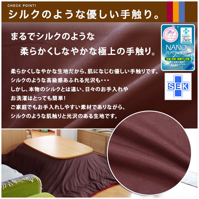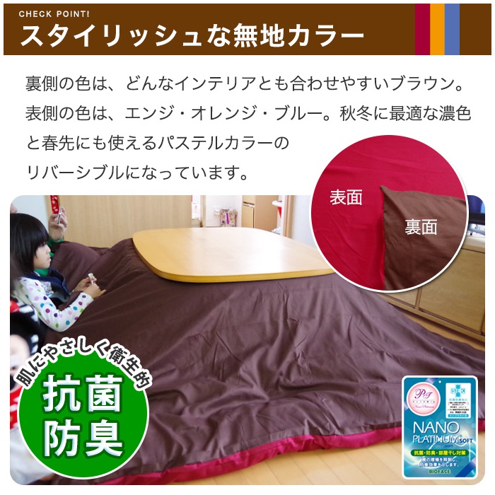 원본상품명: こたつ布?カバ? 正方形 リバ?シブルカラ? こたつカバ? 195×195cm出し入れ便利な 全開ファスナ?コタツ 炬? シルク調ブロ?ド 抗菌 制菌 防臭 ニオイ?策 部屋干しOK 速乾ドライ 丸洗いOK ウォッシャブル 汚れ 介護用 ?策?潔こたつ