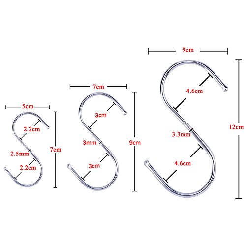 MAGICMAI S Shaped Hooks Hanging Hooks Large, Medium, Small S Hooks Hangers for Kitchen, Bathroom, Bedroom, Office and More use (15Pack(Small+M+Large))