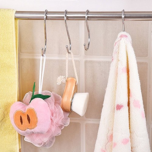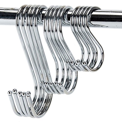 - Sturdy and s shape: rack hooks are made of metal, strong and can withstand weight; Curved hangers securely hook the items and do not slide off easily
