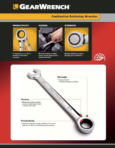 - Ratcheting box-end needs as little as 5 degrees to move fastener VS 30 degrees for standard box end wrenches
