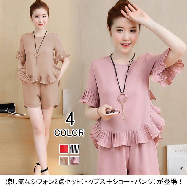 涼し気なシフォン2点セット(トップス+ショートパンツ)が登場!